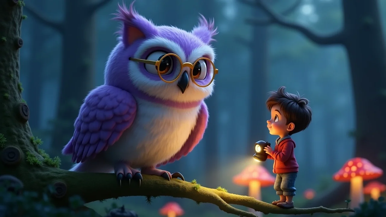 — Ох, говорящий человечек! — ухнула она мягким, глубоким голосом. — Меня зовут Глафира, я Хранительница Ночных Шорохов. Редко встретишь ребёнка, который не прячется под одеяло, а вежливо здоровается с лесной совой. Твоё сердце светится ярче твоего фонарика, малыш.