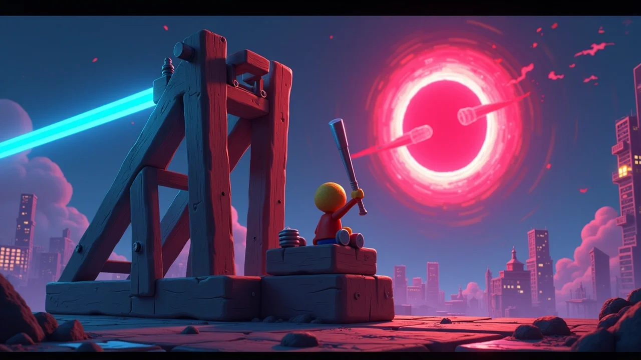 Реф начал действовать. Его движения были молниеносными. В воздухе начали появляться блоки: сначала тяжёлое основание из обсидиана, затем гибкие балки из редкого полимера и, наконец, мощная пружина из зачарованной стали. Молот Рефа выбивал искры, и с каждым ударом конструкция обретала форму. Через мгновение перед ними стояла огромная, светящаяся неоном катапульта.