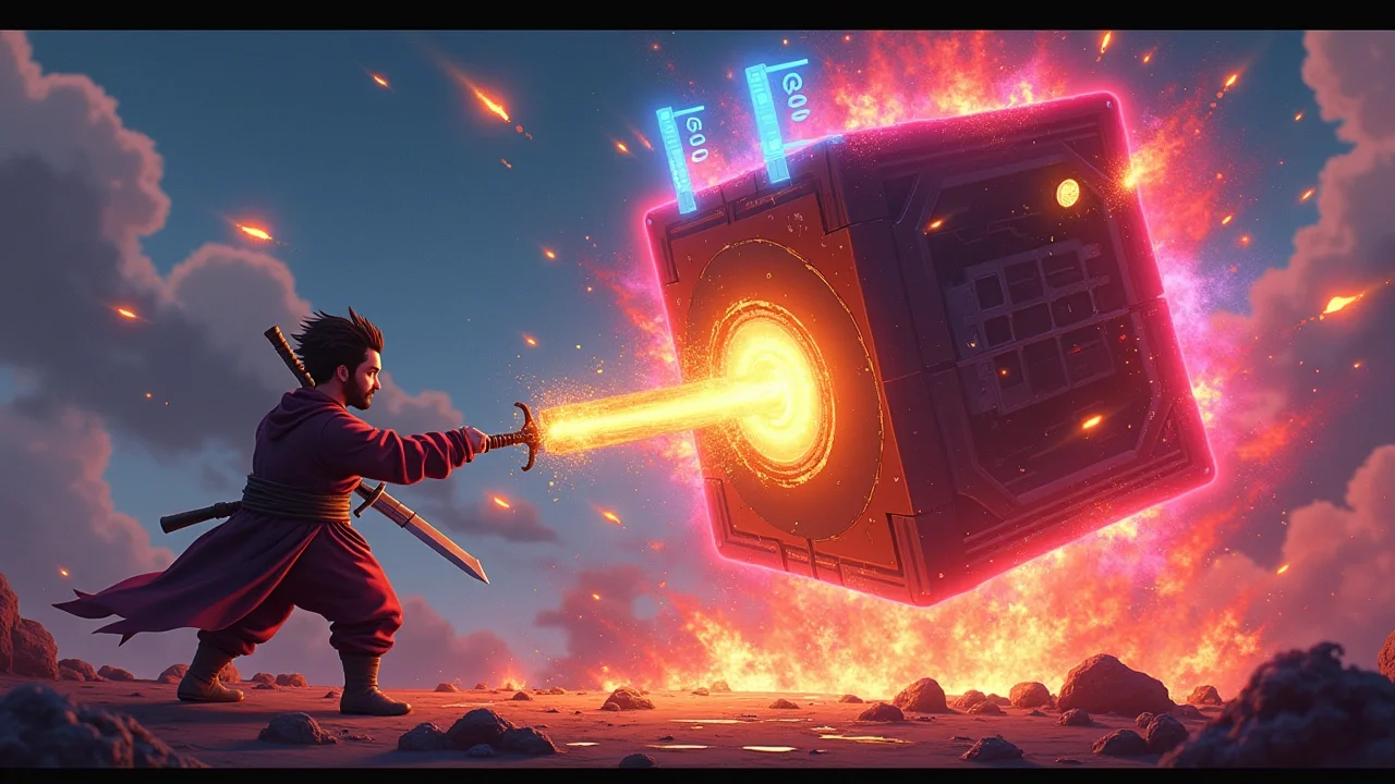 Видя, как его друг попал в ловушку внутри вирусного измерения, Реф понял: обычными блоками здесь не обойтись. Он медленно убрал строительный молот за пояс и положил руку на рукоять своей катаны. Эта катана была выкована из чистого кода первого сервера, и её лезвие могло резать не только металл, но и само пространство.