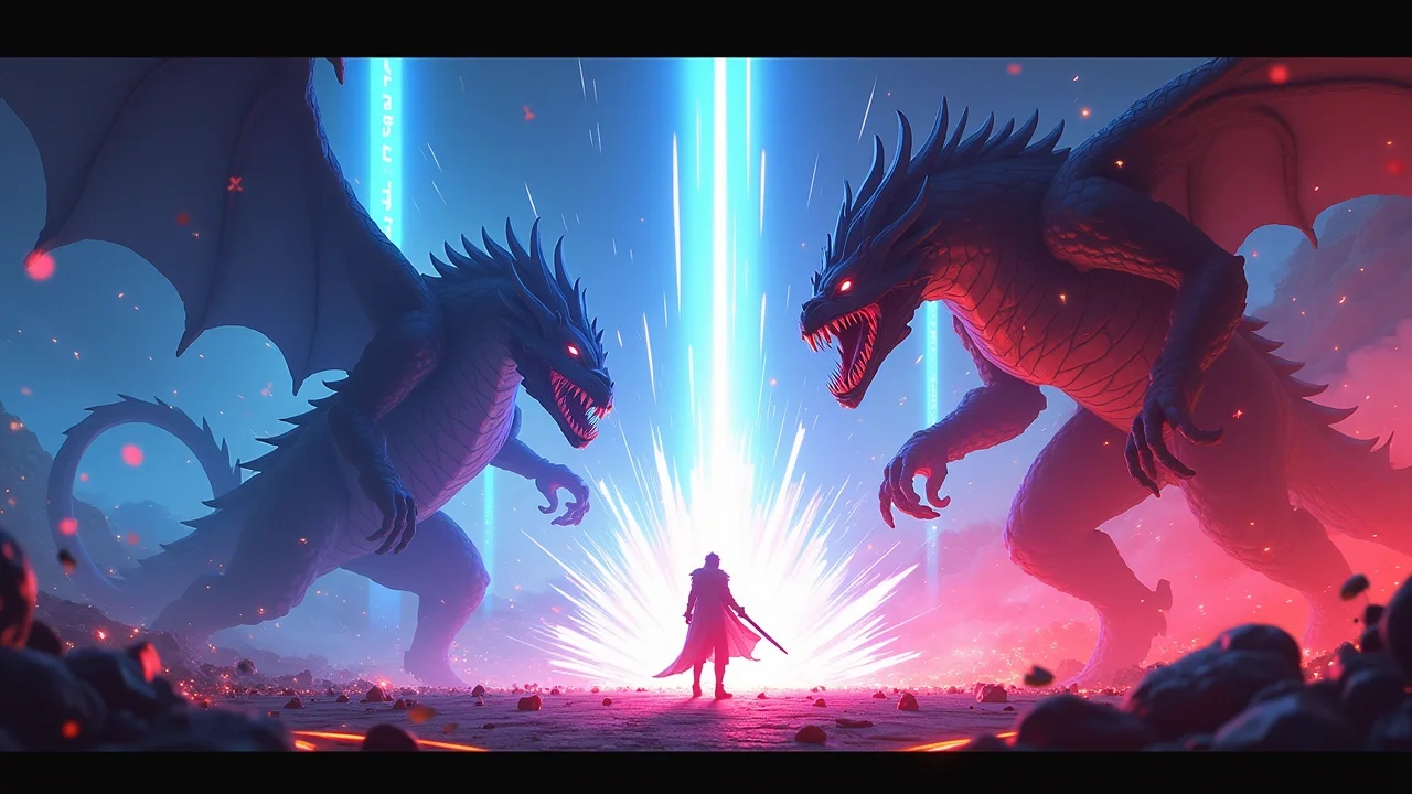 Ананас взревел, и весь Чёрный Неон, что был в его распоряжении, начал закручиваться в гигантскую спираль. Он создал из тёмной материи колоссального восточного дракона, чья чешуя переливалась фиолетовыми искрами Блокс-Фрукта. — Мой Дракон Пустоты поглотит твой анти-код! — выкрикнул Ананас, направляя зверя прямо в сердце пульсирующей воронки.