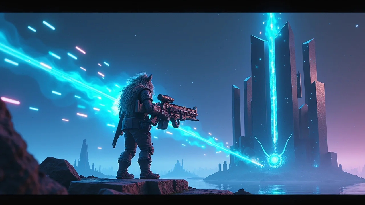 Из стволов вырвался ослепительный поток спектральных пуль. Это были не обычные снаряды, а сгустки чистого программного кода, способные переписывать материю на лету. Каждая пуля светилась ярко-голубым светом, оставляя за собой длинный след из цифр и символов.