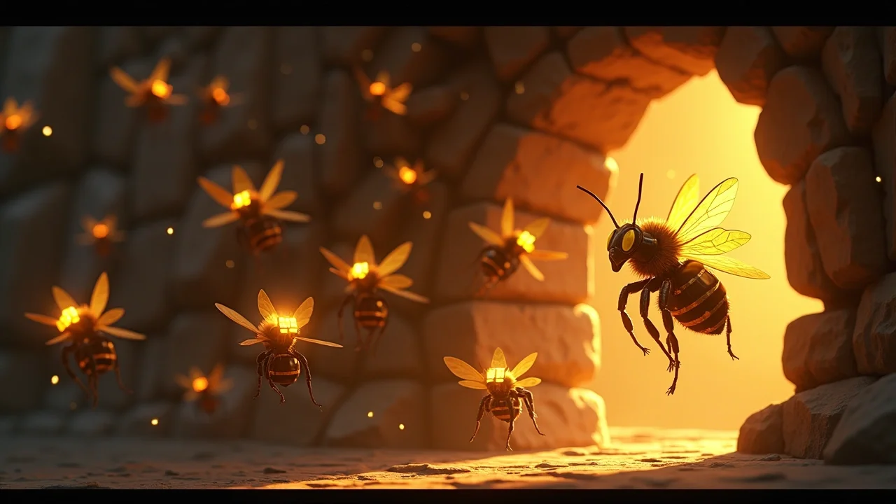 В этот момент ворота со скрипом начали приоткрываться, но из тёмного прохода вылетело несколько механических дронов-пчёл, которые начали атаковать Кунера, мешая ему завершить взлом.